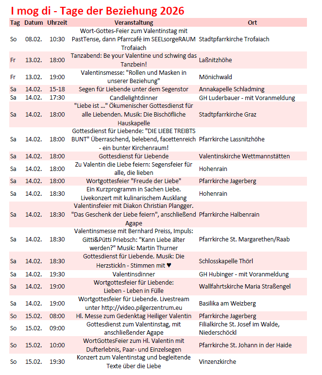 Hier wird in den steirischen Pfarren rund um den Valentinstag die Liebe gefeiert!