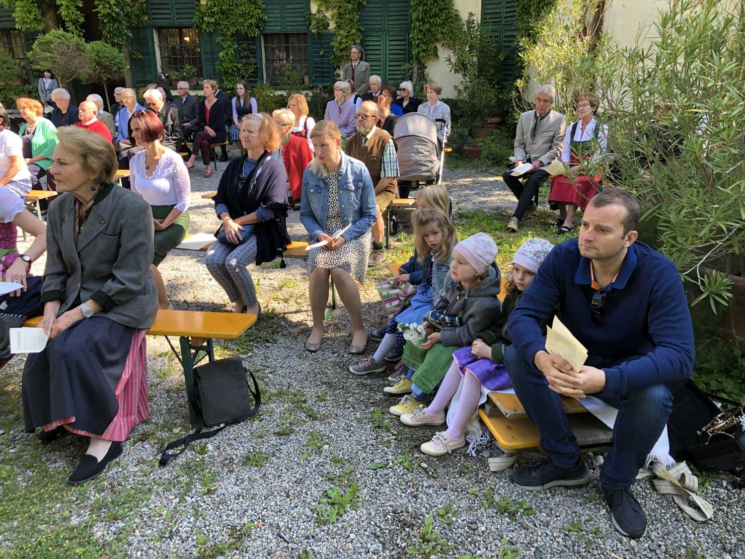 Die Natur zeigte sich von ihrer schönsten Seite, als wir im Hof des Schlosses Thinnfeld das Fronleichnamsfest feierten. Dabei wurden der restaurierte "Himmel" und die Laternen gesegnet.