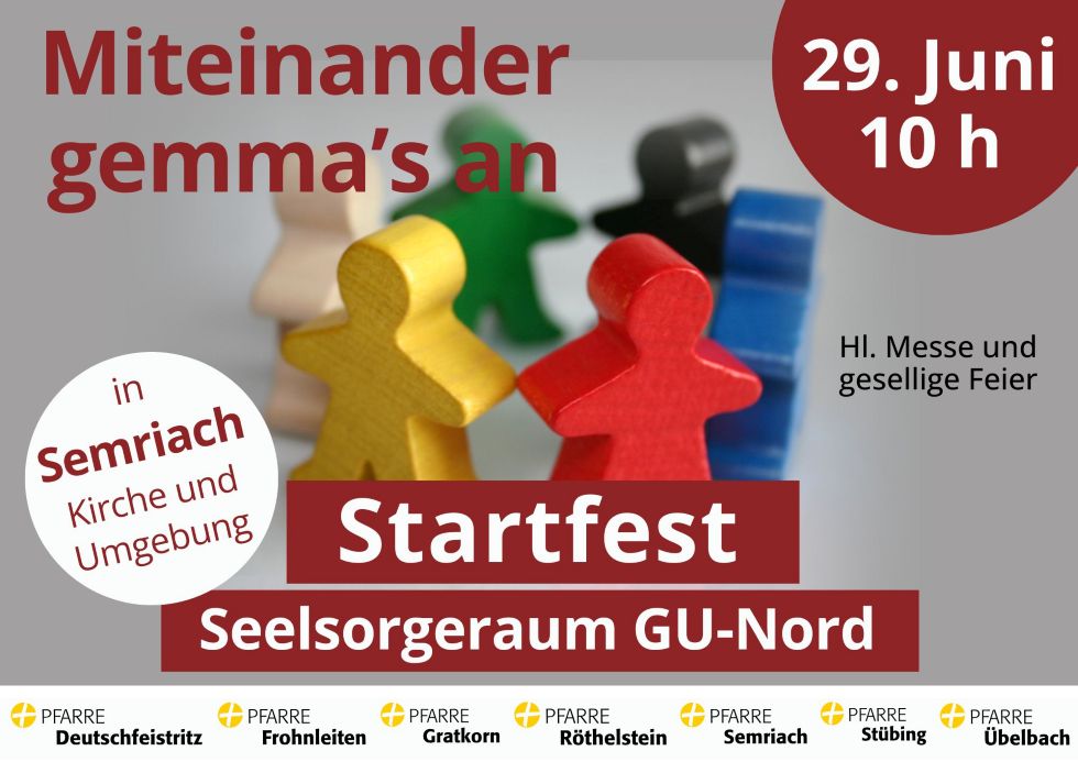 Wir wollen bei diesem Fest beginnen, unser miteinander Kirche sein zu vertiefen und zu verdichten, uns (besser) kennenzulernen, in den nächsten Jahren wird auch unsere Zusammenarbeit stärker werden. Seien Sie dabei – miteinander gemma’s an!