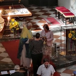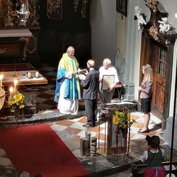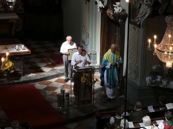Tragischerweise wurde der Feiertag vom plötzlichen Tod unseres langjährigen Organisten und Chorsängers Franz Grasmugg überschattet. So erhielt das abschließende Segenslied, das eigentlich als Gruß und Dank des Chors an unseren scheidenden Pfarrer Pater Simon gedacht war, eine besonders tröstliche Bedeutung. Das für das 800-Jahr-Jubiläum der Diözese Graz-Seckau komponierte Stück verwendet im Refrain einen Text von Edith Stein: „Ohne Vorbehalt und ohne Sorgen leg´ ich alle Zeit in deine Hand“.