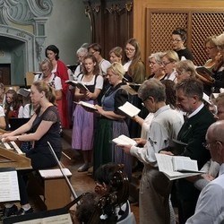 Mit dem Schulanfang nahm auch der Chor der Pfarre Frohnleiten wieder seine wöchentlichen Proben auf und bereitete für die festliche Messe zum Erntedankfest die „Missa brevis Sancti Joannis de Deo“ von Joseph Haydn vor. Den bekannteren Beinamen „Kleine Orgelsolo-Messe“ trägt das Werk, weil das „Benedictus“ zusätzlich zu den Streichern ein virtuoses Orgelsolo zur Begleitung der Sopransolistin enthält.