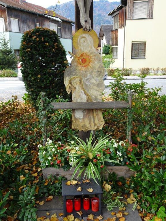 Gepflegt wurde dieses schöne Zeichen des Glaubens seinerzeit von Maria Schaffer, dann über viele Jahre von den Schwestern Maria und Elisabeth Schneller. Von ihnen hat Familie Weingerl diese Aufgabe übernommen. Als noch die Fronleichnamsprozession durch den Vormarkt führte (bis 2018), schmückten die genannten Personen auch den zweiten Altar vor dem Kreuz.