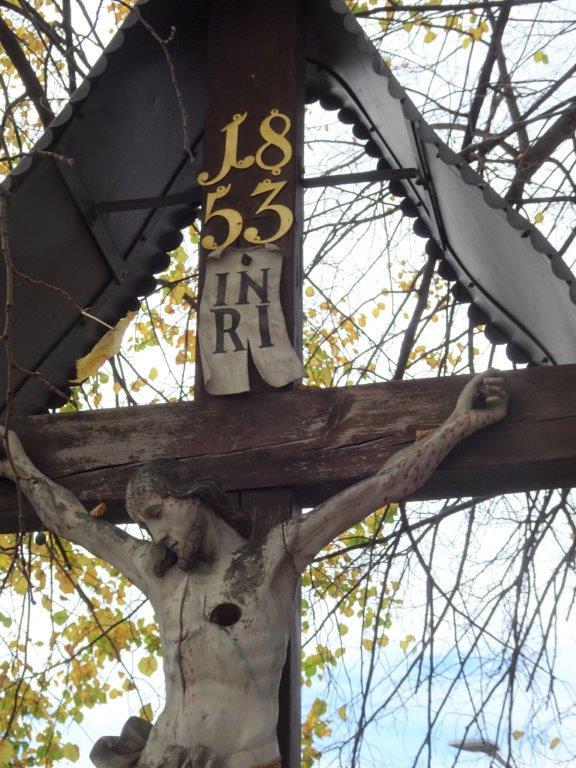 Vor dem massiven Missionskreuz, das von drei mächtigen Lindenbäumen und Sträuchern umgeben ist, befinden sich ein hölzerner Betstuhl, ein eisernes Kerzenbehältnis und ein Holzkisterl mit Blumen. Unterhalb der Jahreszahl 1853 ist eine Tafel mit der Aufschrift „J.N.R.J.“ („Jesus von Nazareth, König der Juden“) angebracht. Später wurde ein Gemälde der Schmerzhaften Gottesmutter auf Blech am Kreuz befestigt. Geschützt ist dieses Kleindenkmal mit einem kunstvoll gestalteten Blechdach. Der Zugang ist mit kleinen Pflastersteinen ausgekleidet.