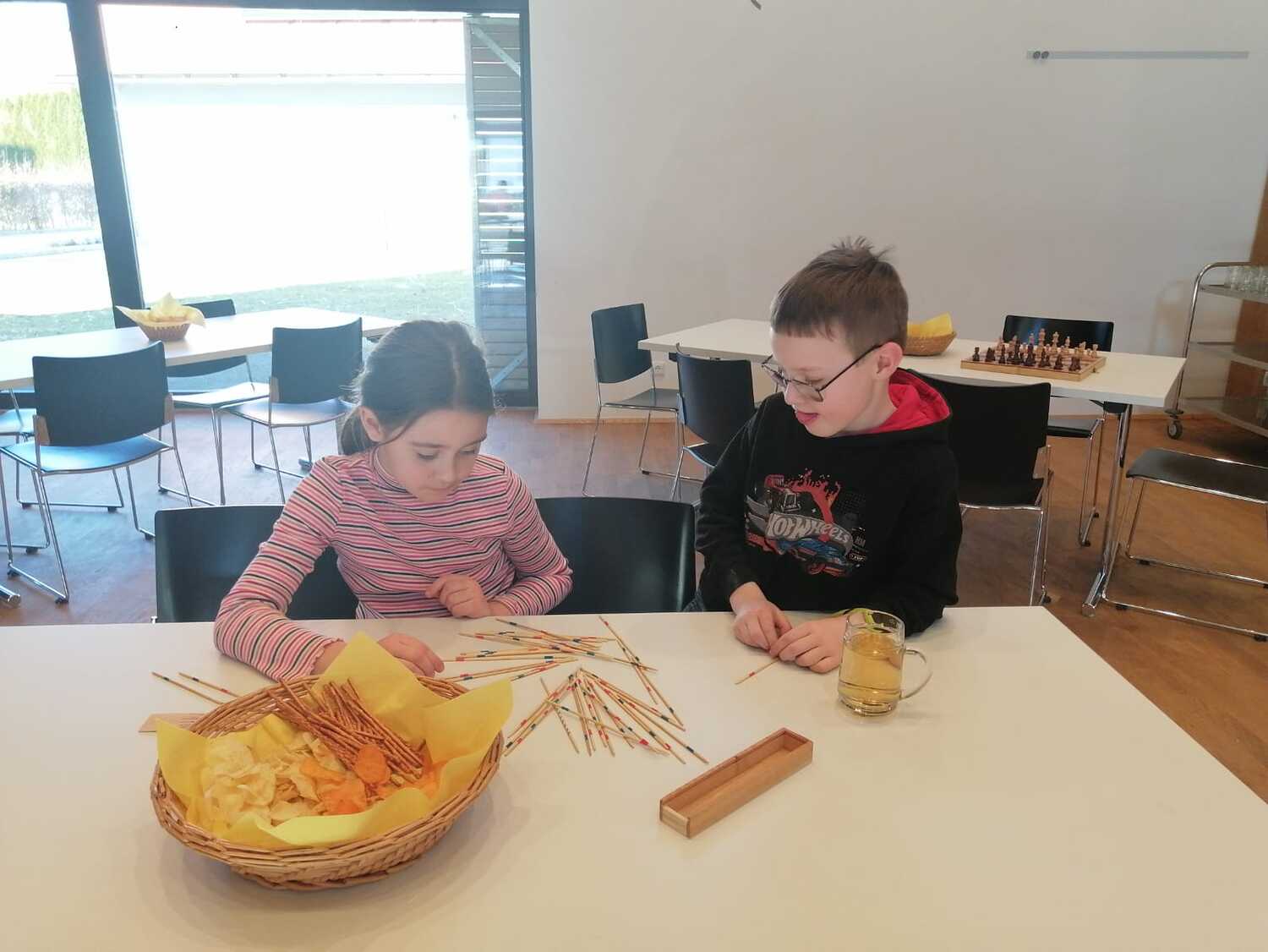 Auch Ge­sell­schafts­spie­le, wie Schach und Wür­feln mach­ten gro­ßen Spaß und in ei­nem gro­ßen Kreis­spiel wa­ren Kon­di­tion und Ta­len­te ge­fragt. Je nach Lust und Lau­ne konn­ten sich die Be­su­cher/­innen in klei­nen Grüp­pchen zu­sam­men­fin­den, spie­len und auch krea­tiv wer­den.