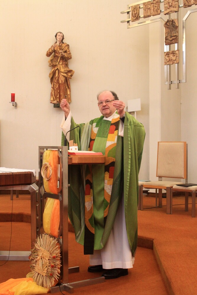 Es wurde im Rahmen des Festgottesdienstes nicht nur für Ernte gedankt, sondern auch für die Jahre überdauernde Liebe und die gemeinsamen Ehejahre. Am Ende der Feier erhielten unsere Jubelpaare eine Kerze und den Segen für die gemeinsame Zukunft.