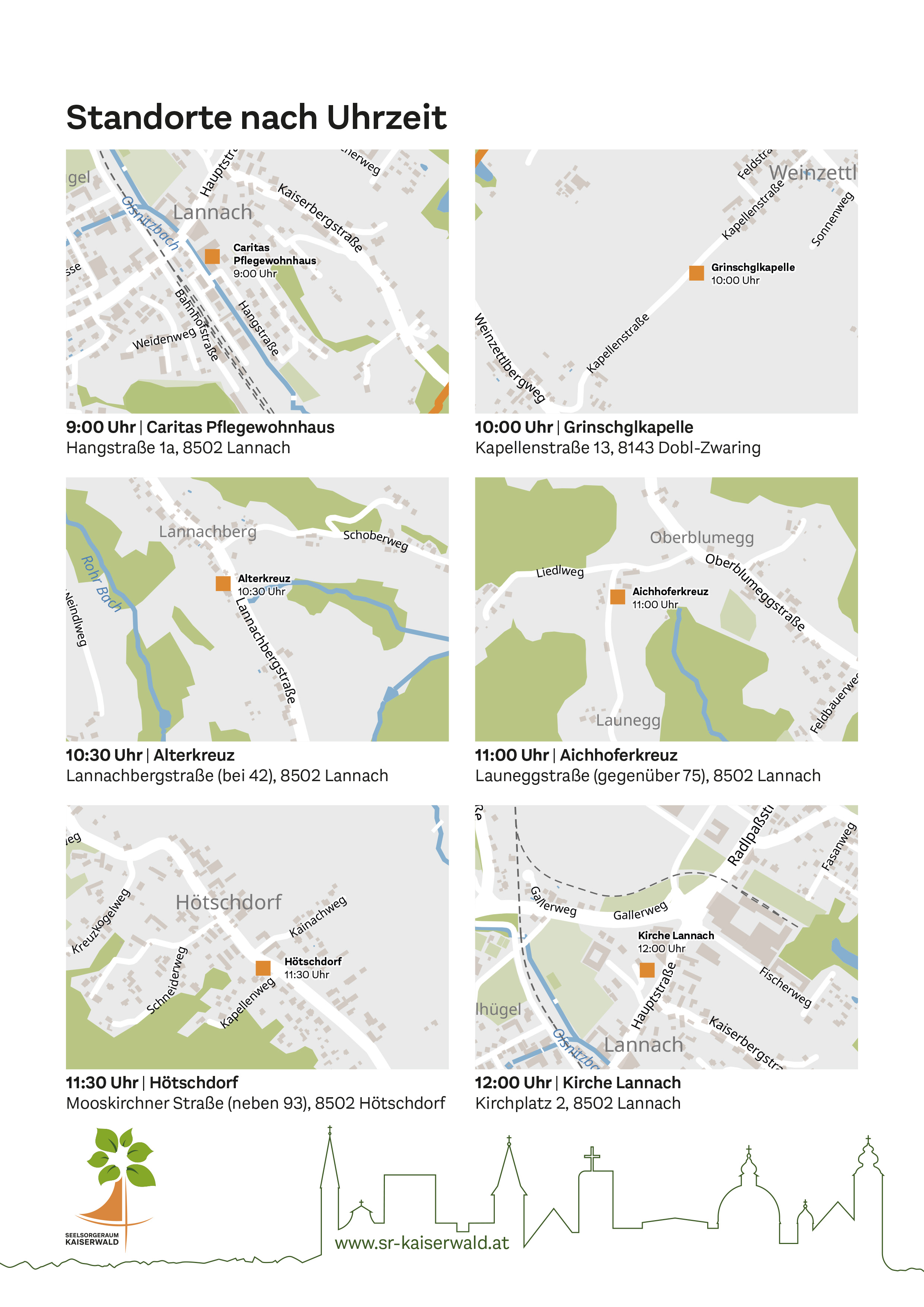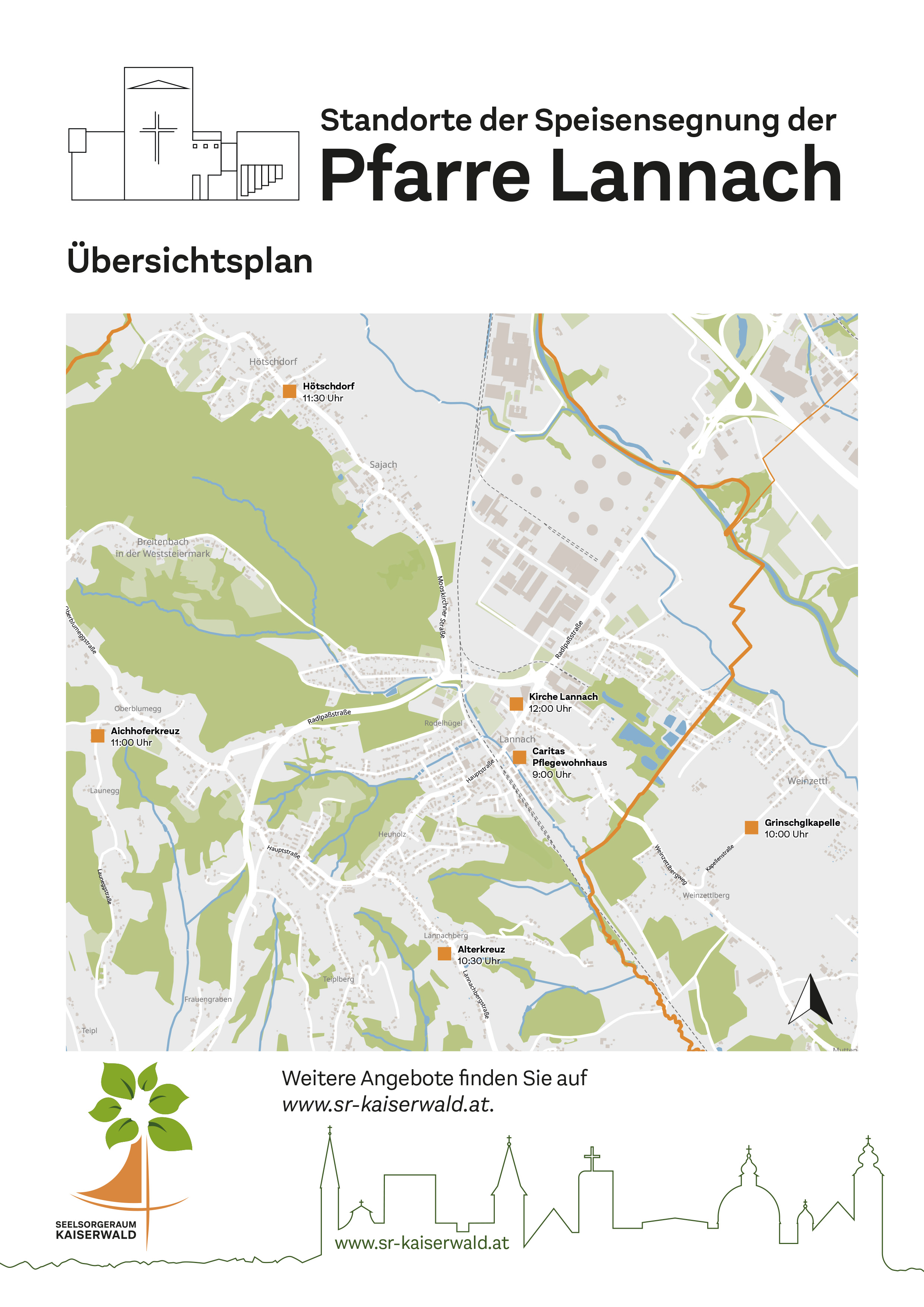 Alle Termine und Standorte (samt Übersichtsplan) zu den Speisensegnungen im Pfarrgebiet am Karsamstag, den 4. April 2026!