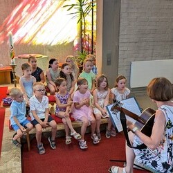 Gesegnet und gestärkt konnten die Gottesdienstbesucher:innen das neue Schul- und Arbeitsjahr beginnen. Alle Kindergarten-, Schultaschen, Unirucksäcke, Laptoptaschen...und Koffer wurden mit ihren Besitzer:innen mit dem Segen Gottes und dem Wissen "Ich bin nicht allein" begleitet. Als Erinnerung daran wurden kleine Segens- und Stärkungssymbole verteilt. Tina Schörgi lud alle ein wieder mehr zu segnen, was jede und jeder darf, und den Mitmenschen Gutes zu wünschen: durch ein Kreuz auf die Stirn beim Gute Nacht sagen, beim Anschneiden eines Laib Brotes, beim Abschied mit Weihwasser.... Alle Kinder erhielten kleine Weihwasserfläschchen und die Erwachsenen die Erinnerung, dass wir "Gott befohlen" sagen, wenn wir "tschüss" sagen, das vom französischen a dieu kommt oder "God be with you" beim Gruß "bye, bye". Ein gemischter Chor hat die Feier wunderschön musikalisch gestaltet.