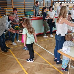 Nach der wunderschön gestalteten Erstkommunion zogen die Erstkommunionkinder in die Halle um beim Start des Pfarrfests dabei zu sein. Nachdem wir letztes Jahr richtiges Wetterglück hatten, mussten wir diesmal in die Veranstaltungshalle ausweichen. Dem Wetter zum Trotz war die Stimmung sehr gut. Das Kinderprogramm war gut besucht, viele Preise wurden verlost und natürlich gab es wieder genug zu essen und zu trinken. Obwohl diesmal besonders viele Torten gebacken wurden, waren am Schluss alle weg.