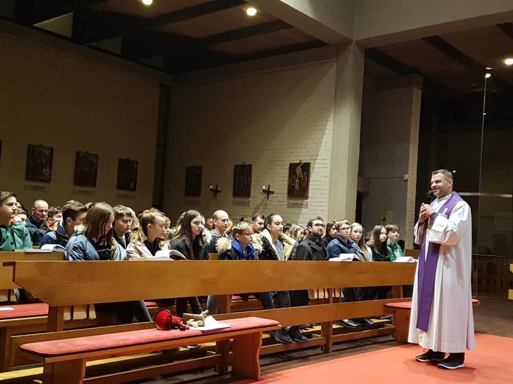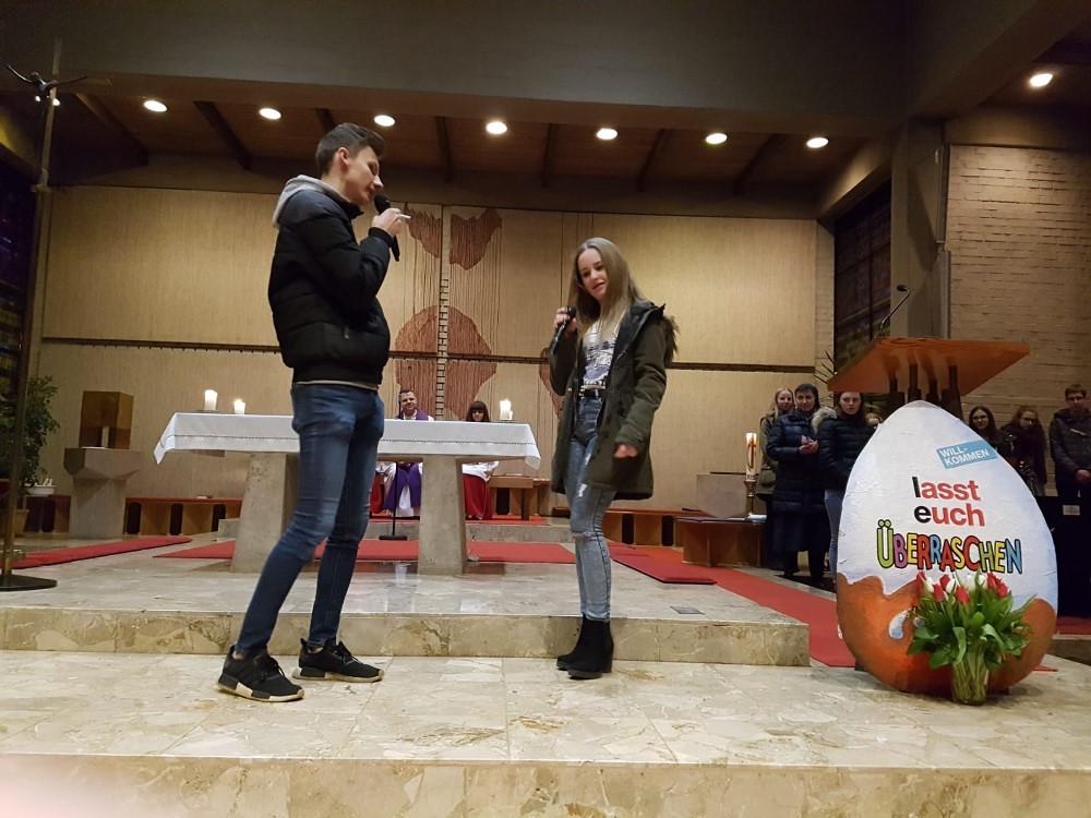 Der Firmlingsgottesdienst im Pfarrverband am 29. Feber hatte das Thema Versuchungen. Jasmin Kormann und Markus Koglek spielten einen super Sketch zu den Versuchungen Drogen, Mobbing und Social Media als Einstimmung. Bernhard Pesendorfer, der geplante Firmspender, feierte mit den Jugendlichen einen zum Nachdenken anregenden, sehr persönlichen und herausfordernden Gottesdienst, der uns die Versuchungen Jesu, aber vor allem die Versuchungen, denen wir heute ausgesetzt sind, nahebrachte.