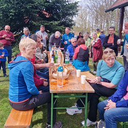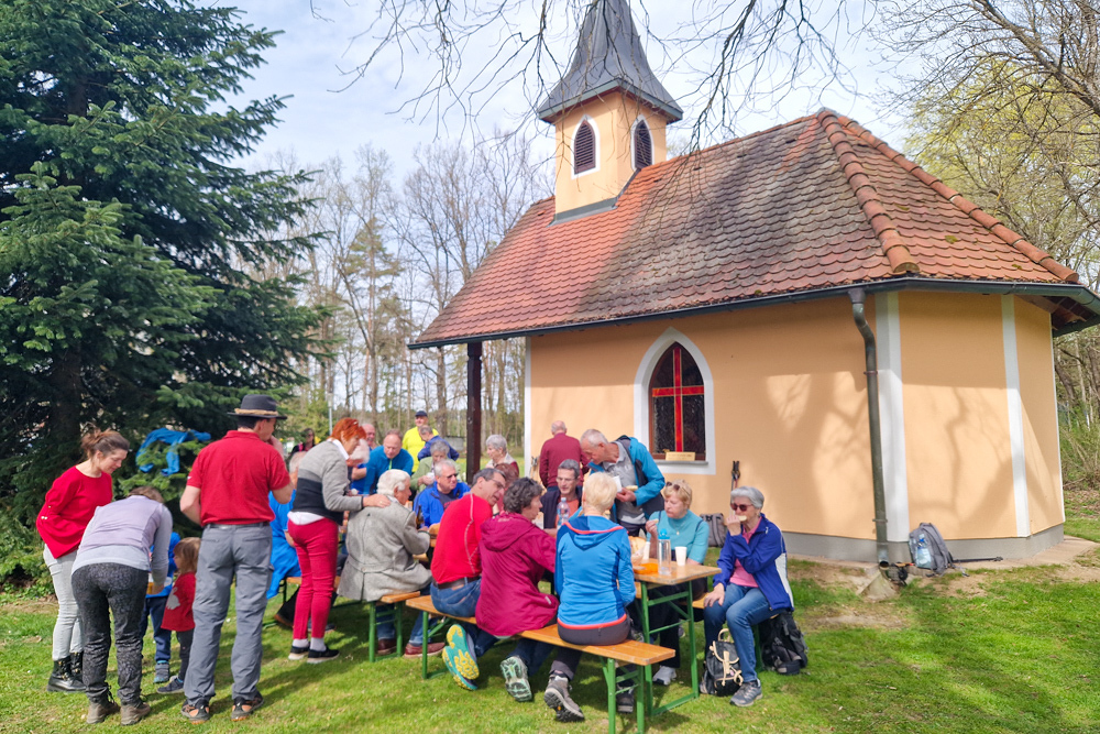 Das Ziel des Tages war die Marienkapelle im Kaiserwald. Dort feierten wir um etwas nach 11:00 Uhr einen Gottesdienst und ließen den wunderbaren Vormittag anschließend bei herrlichem Wetter und einer kleinen Agape ausklingen.