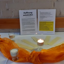 mit Symbolen vor dem Altar fordern zur persönlichen Vertiefung heraus.