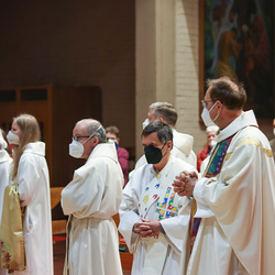 Am Gründonnerstag feierten wir eine gemeinsame Seelsorgeraum-Messe in der Pfarrkirche Lieboch. Mit dabei waren drei Priester, drei Diakone, drei Pastoralreferentinnen, über 20 Ministranten und verschiedene weitere Dienste aus unseren sechs Pfarren.